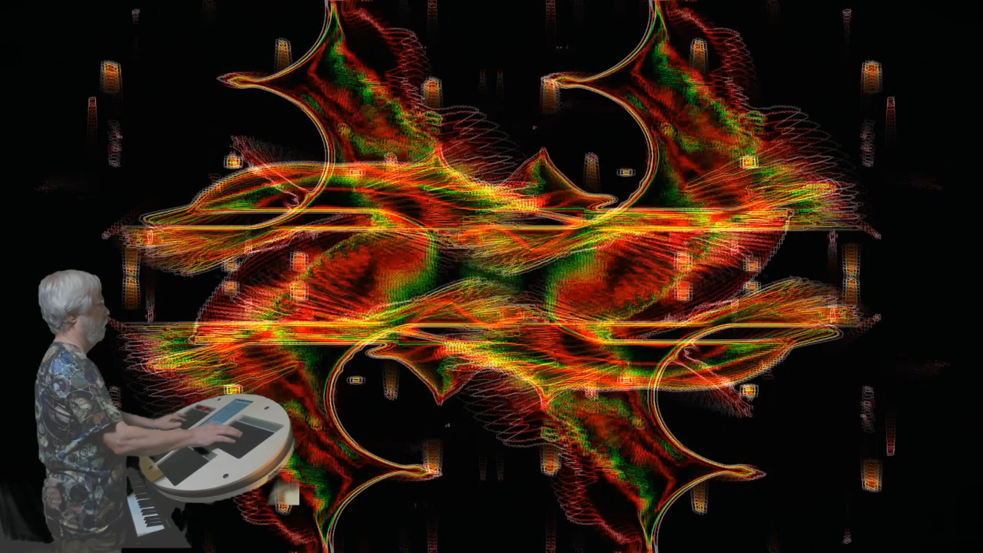 When computer-based graphics became fast, cheap, and ubiquitous in the early 2000’s, it was inevitable that my algorithmic music exploration would expand to include interactive real-time graphics. The first efforts were camera-based (LoopyCam), Kinect-based (Space Palette), and LinnStrument-based (UniLooper).