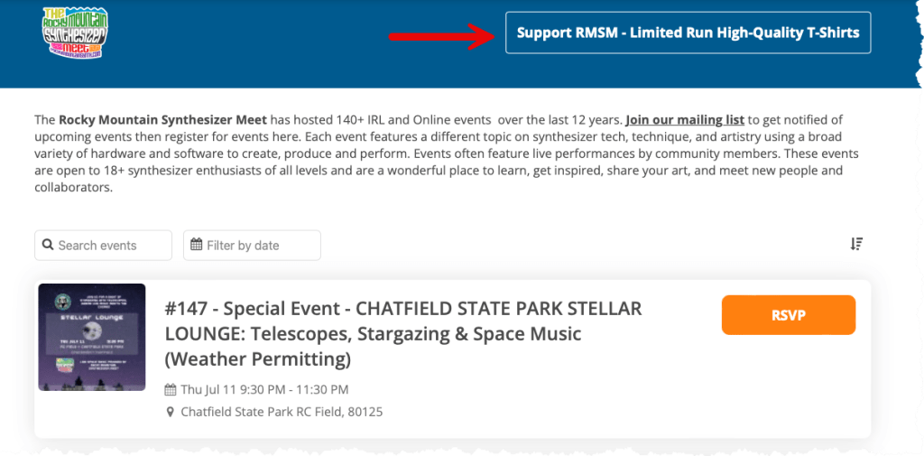 I’m super excited to announce we are partnering with Chatfield State Park and Colorado Parks & Wildlife for a night of stargazing with telescopes, where live music meets the cosmos at the Stellar Lounge. Rocky Mountain Synthesizer Meet is providing live space music provided by yours truly.