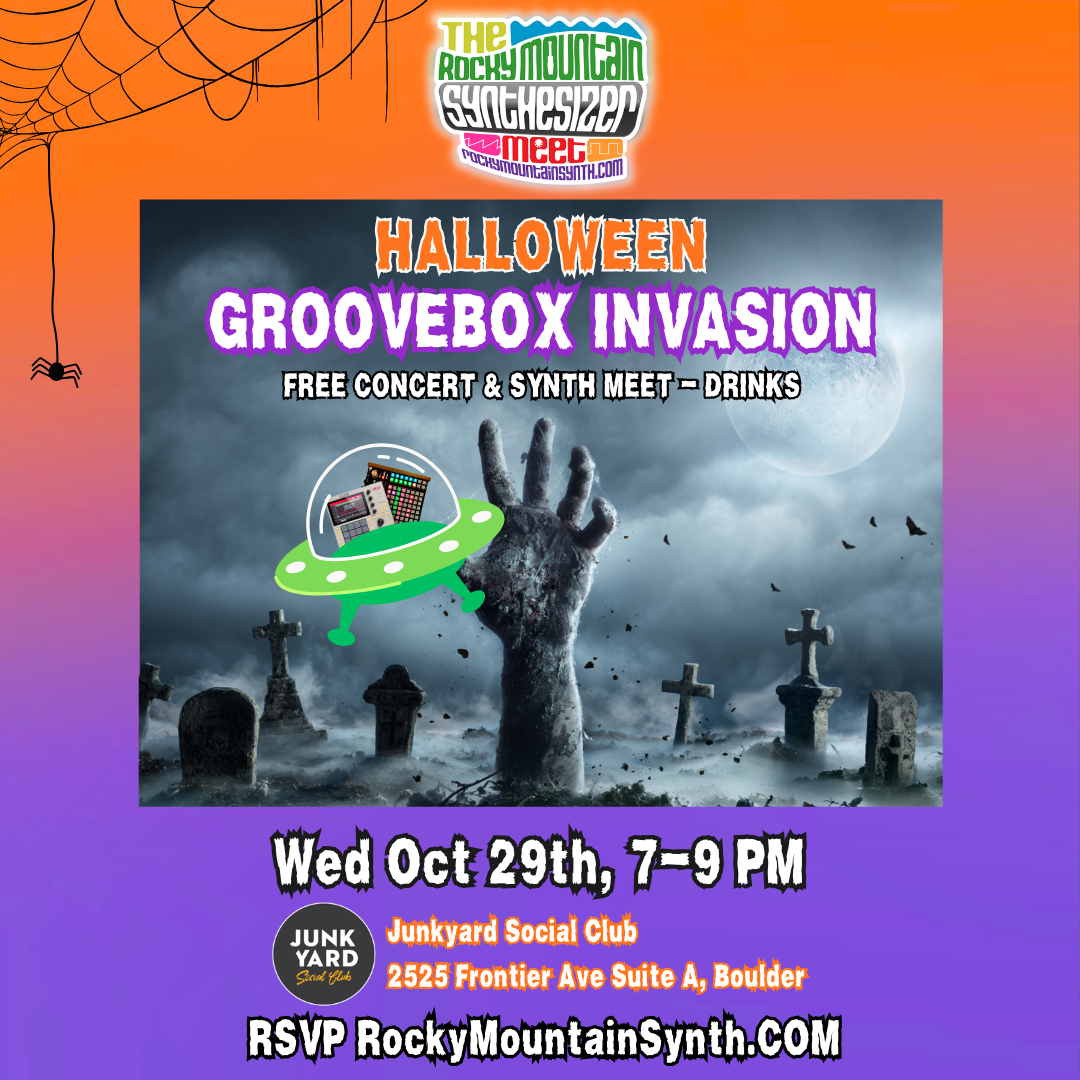 Join us for our 162nd event on Wednesday, October 29th from 7-9pm at the Junkyard Social Club in Boulder for a free concert featuring Halloween-themed groovebox performances by Rocky Mountain Synthesizer Meet members.